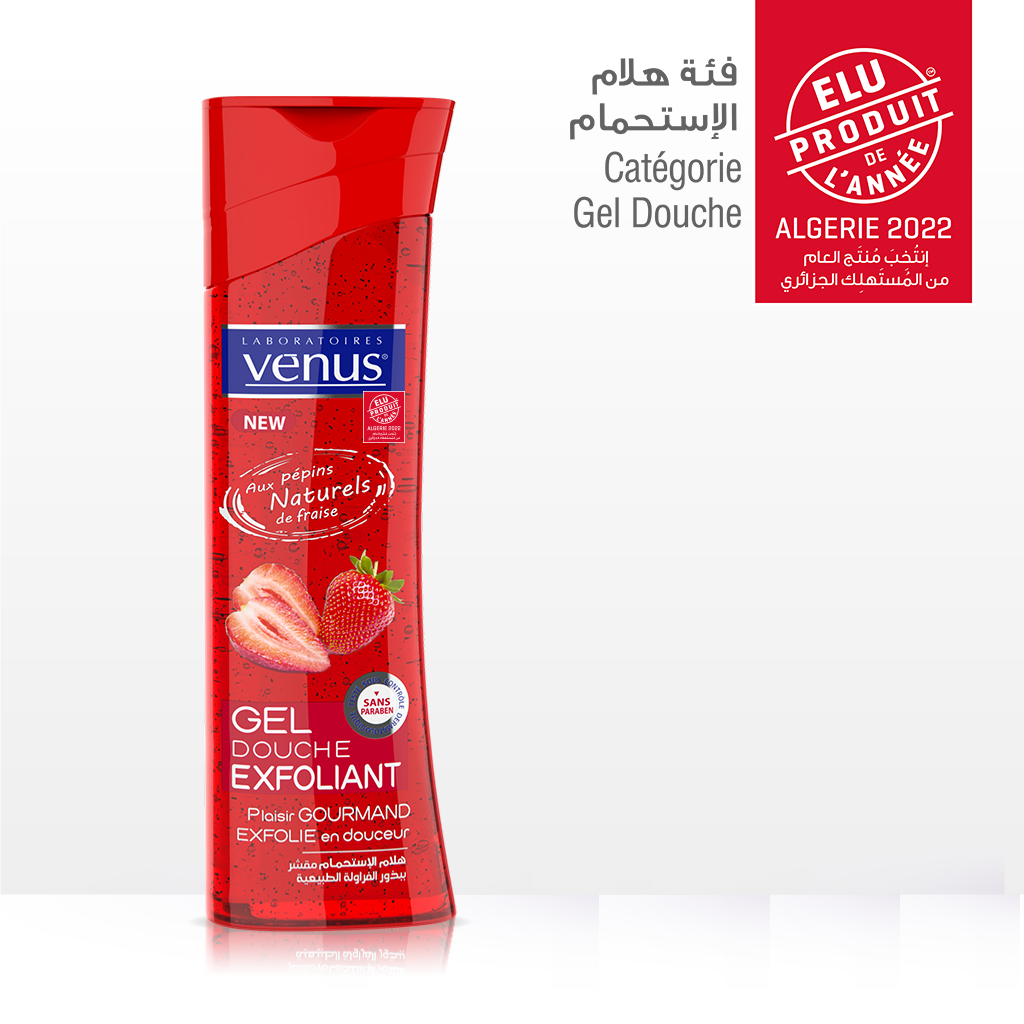 Le gel douche gourmand des Laboratoires Vénus® allie efficacité et soin grâce à sa formule enrichie en Pépins Naturels de Fraises. Il nettoie en douceur tout en éliminant impuretés et cellules mortes, pour une peau parfaitement propre et douce. Son parfum frais et sucré laisse un délicat sillage, tandis que sa texture agréable transforme chaque douche en un moment de plaisir. Sans paraben et testé sous contrôle dermatologique, il convient aux peaux sensibles en quête de fraîcheur et de confort.
